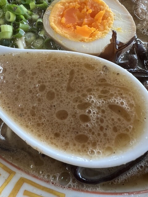 やや塩味強めのマイルドな豚骨スープ。