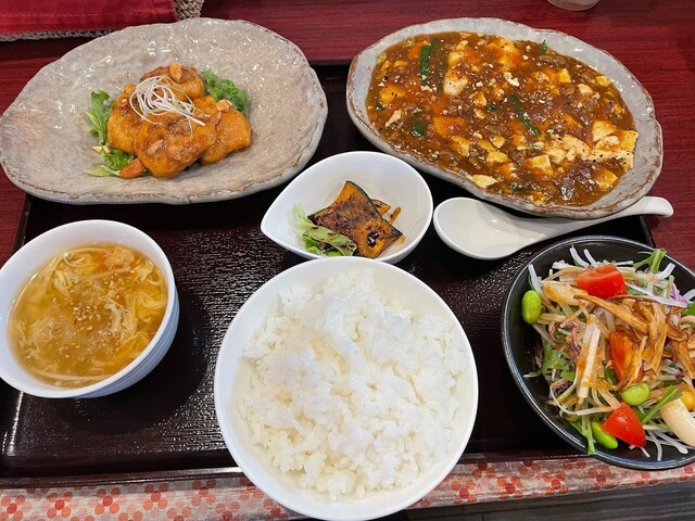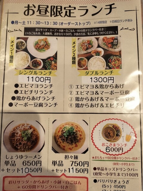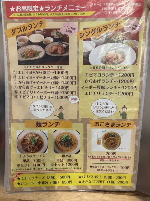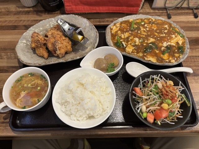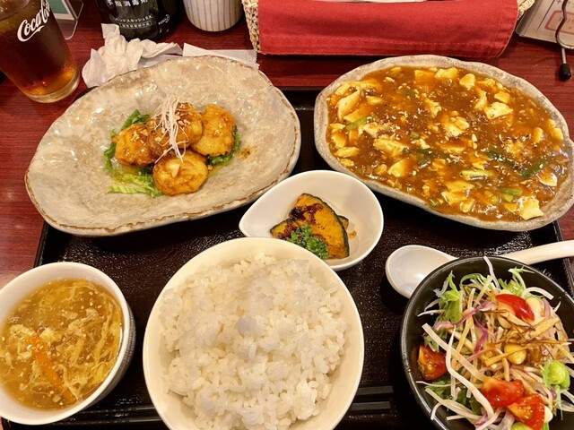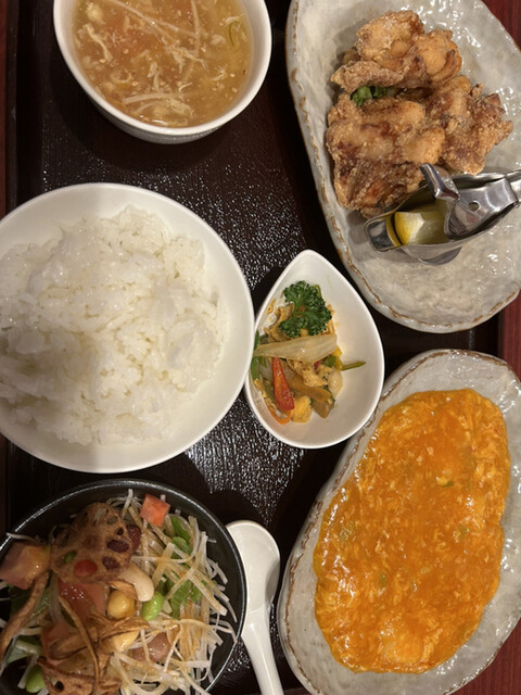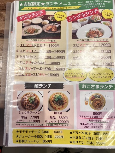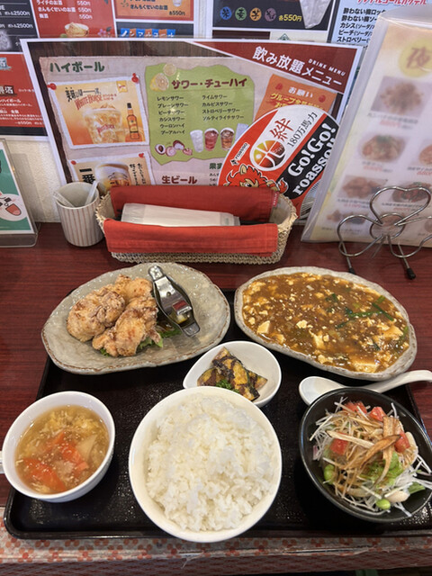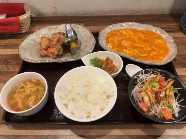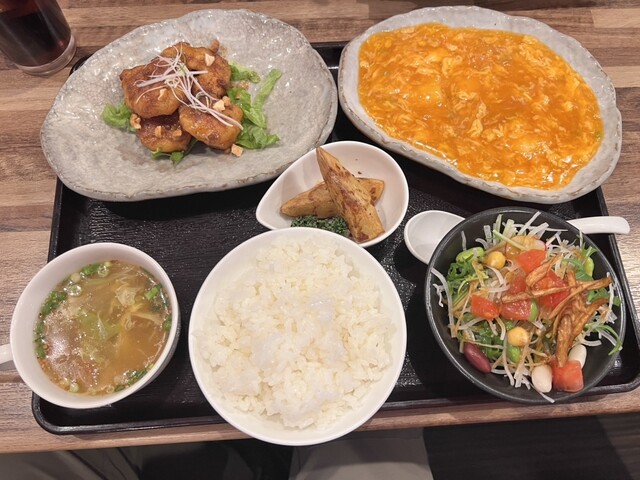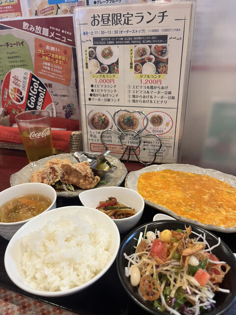 ダブルランチ1200円税込が良いとお聞きしていたので、鶏から揚げ&エビチリ...