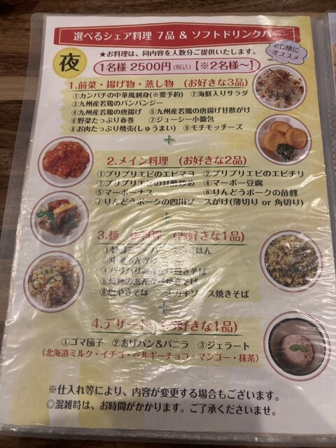 | サービス | 2時間半以上の宴会可、テイクアウト |