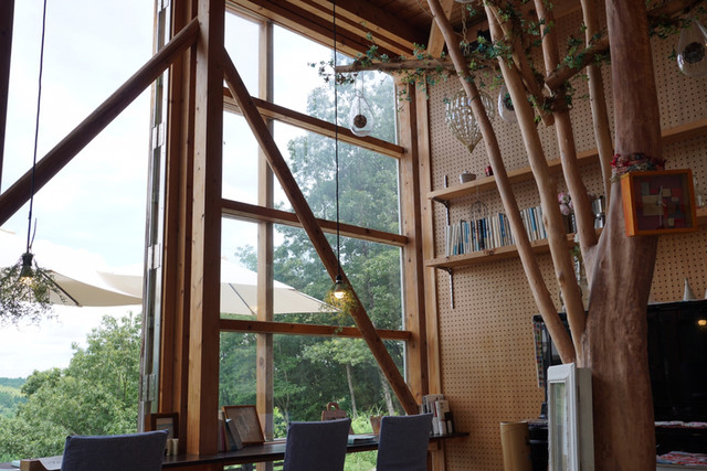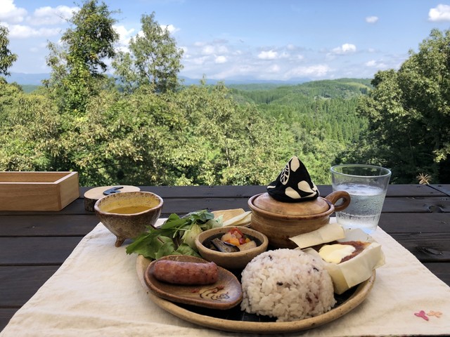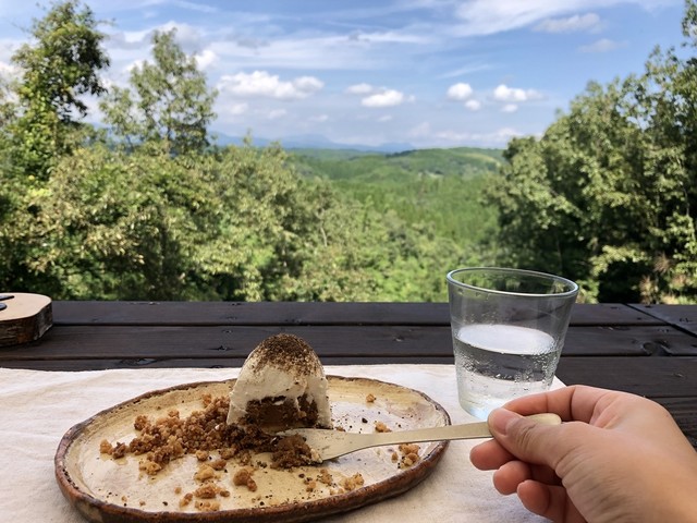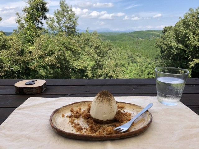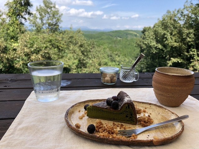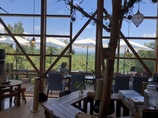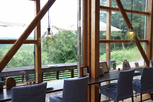 室内のクーラーの効いたとこで快適に。ここでも、遠景で山都の自然が楽しめます。