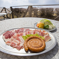 阿蘇の溶岩プレートを使ったBBQです。遠赤外線の効果でじっくりと焼いていただくと美味しく召し上がっていただけます。室内の専用BBQコートでお楽しみください。