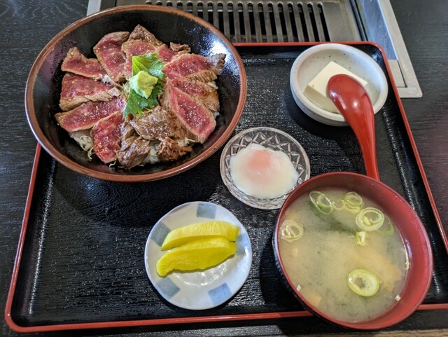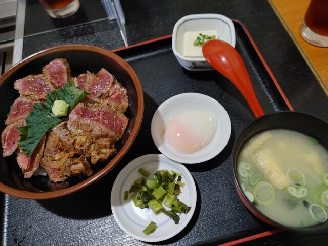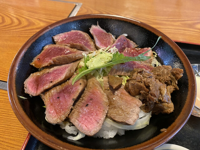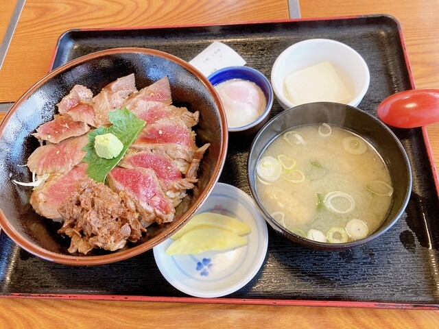 赤身の旨味が濃厚で、脂身のバランスも良い「あか牛」。当店では自社牧場で育てたあか牛を使用しており、新鮮で上質な国産和牛がリーズナブルにお楽しみいただけます♪名物「あか牛丼」をはじめとした肉料理や定食、麺類などグランドメニューは種類豊富!大自然に囲まれ、観光地へのアクセスも◎広々とした和空間に大小個室を完備しておりますので、ご家族のお食事やご旅行でのお立ち寄りなど幅広いシーンでぜひご利用ください。