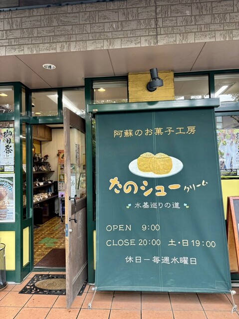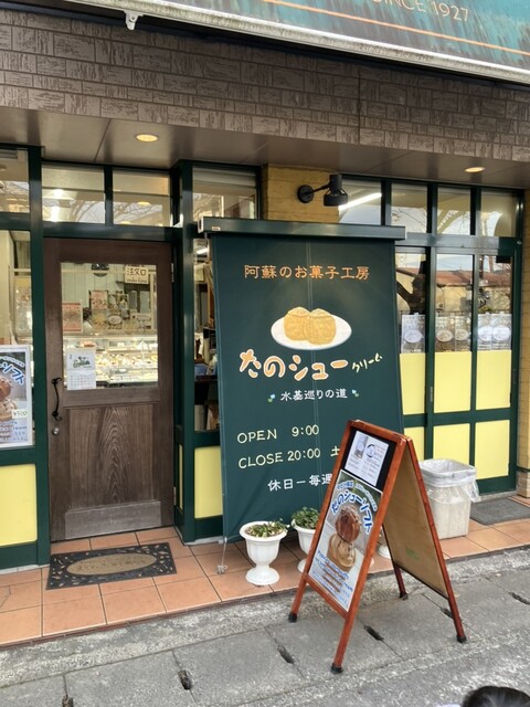 阿蘇神社から数百メートルのところにある洋菓子屋さん。狭い店内には、左の壁側に所狭しと焼き菓子が置いてあり、正面には生スイーツのガラスショーケースとレジがあり、大行列が出来ています。... 詳細を見る