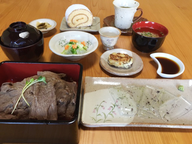 赤牛の牛丼とざるそばのセットにしました。