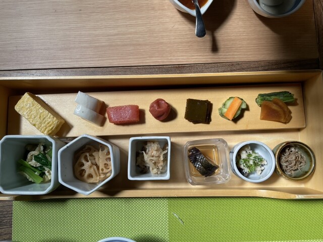 5月中旬の訪問でした。朝食を別記載します。 献立は写真のとおり。 小鉢いろいろには、小松菜と揚げのお浸し、蓮根のきんぴら、切り干し大根、茄子の煮物、白和え、山椒じ... 詳細を見る