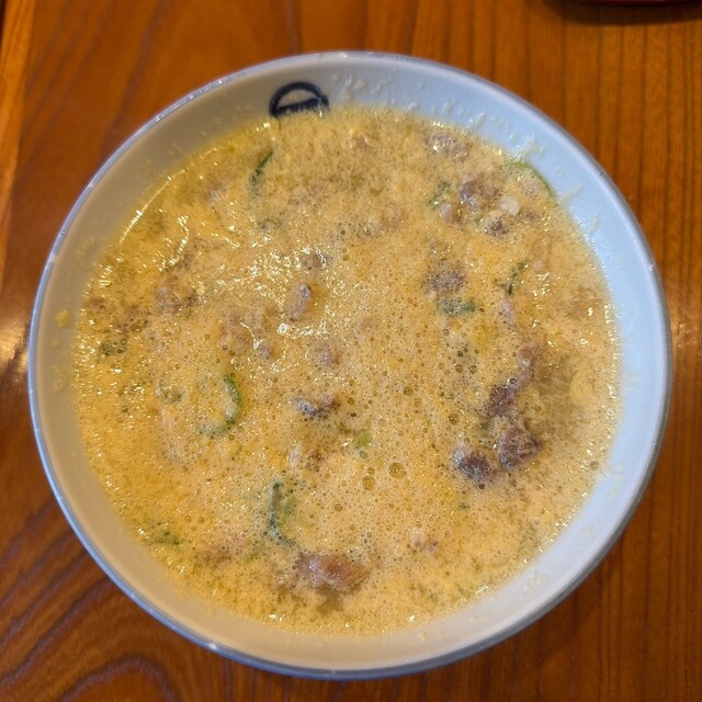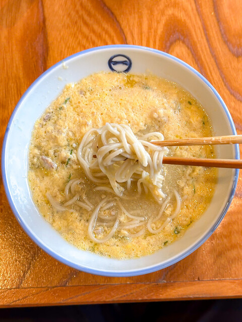 一見独特な感じだが、鶏だしの風味が香り食欲を誘う。まるで親子丼の様だ。そばに鶏だし、鶏肉、たまごが入っている。スープの美味しさとたまごの口触り、鶏肉の食感、そばの風味がマッチする。クセになる美味しさである。