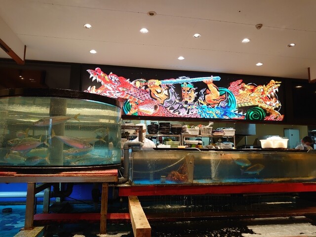 土曜の夜、予約無しで訪問(個室は満席) 熊本店と同じく店内には大きな水槽や生簀がありちょっとした水族館気分 板さんがヤリイカを何度か水槽から揚げてらしたのでヤリイカが人気者なんでしょうか 注文はメニューが多すぎて姪にお任せ フライドポテト・アサリバター・ほうらい盛り・イカの唐揚げ・山芋ス... 詳細を見る