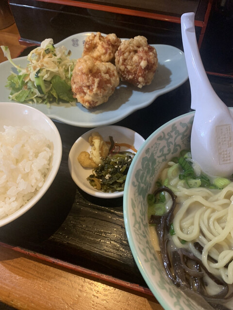 値段は950円でしたが、ラーメンとごはん、から揚げ、漬物がつくので...