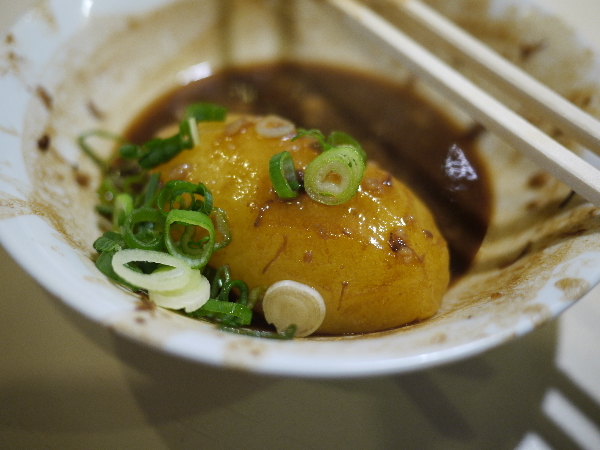 ツマミにおでんのメニュー札から4品ほど頼むと