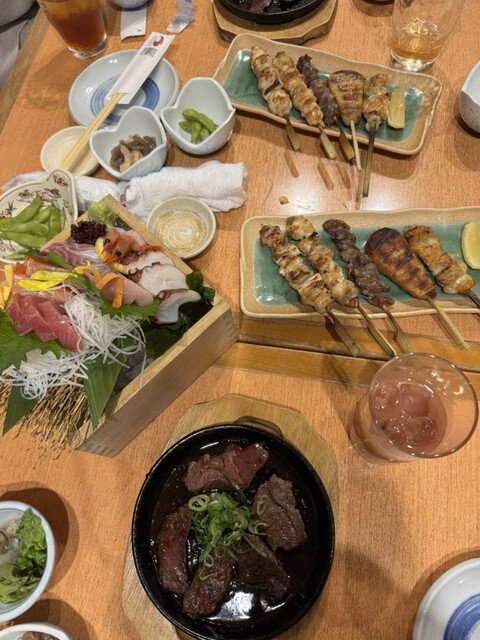 焼き鳥、お造り、釜飯、だしまき、生麩田楽などのおばんざいなど…