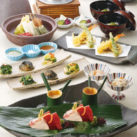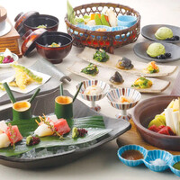 季節によって変わる旬の味覚を楽しんでいただける京ざんまいコース『 貴船 』。お造りや椀物、蒸し焼料理、天ぷらなどに、季節のかご盛りサラダも楽しめます。忘年会、新年会、送別会、歓迎会などの各種宴会におすすめです。接待などのビジネスシーンにもご利用ください。