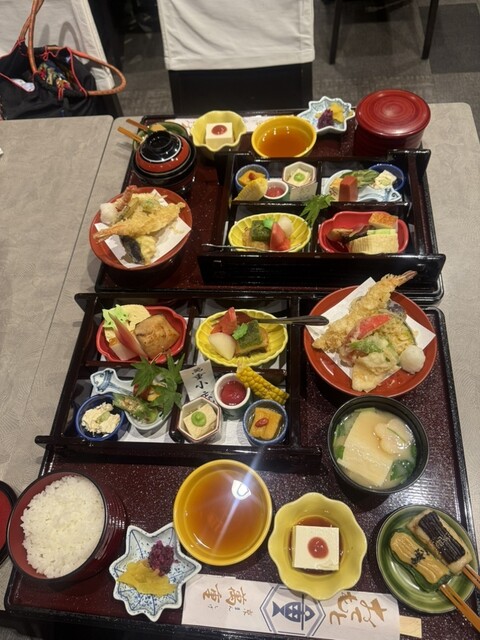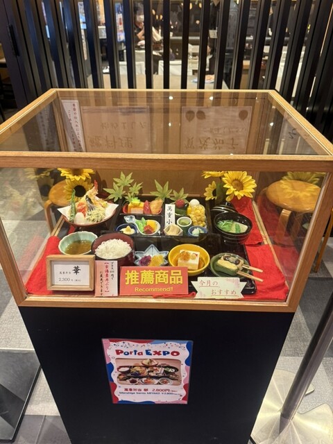 最初は天ぷら専門店へ行く予定してしていましたが、その隣にある萬重さんの展示してある料理が華やかすぎて、こちらにお邪魔しました