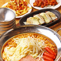 「【2h飲み放題付き!】旨辛!コリアンナイト♪プデチゲ鍋やチーズチヂミ含む全5品◆税込4500円」がおすすめです。