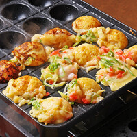 自分で焼いて楽しむ、ワイワイ系のタコ焼きコース! まずは「旨塩キャベツ」と「たたき胡瓜」で軽くつまんでいただき、メインは タコ焼きを好きなだけ焼ける食べ放題スタイル。 友達同士で焼き比べたり、焼き技を競ったりと盛り上がること間違いなしです。 さらに、店舗の近くにはコンビニなどもあるため、 お好きな具材を自由に買って持ち込みOK! 定番のチーズやキムチから、変わり種まで、オリジナルタコ焼きを作って楽しめます。 ドリンクは 2時間飲み放題(90分ラストオーダー) 付き。 自分たちだけのアレンジで、気軽に盛り上がれる人気コースです