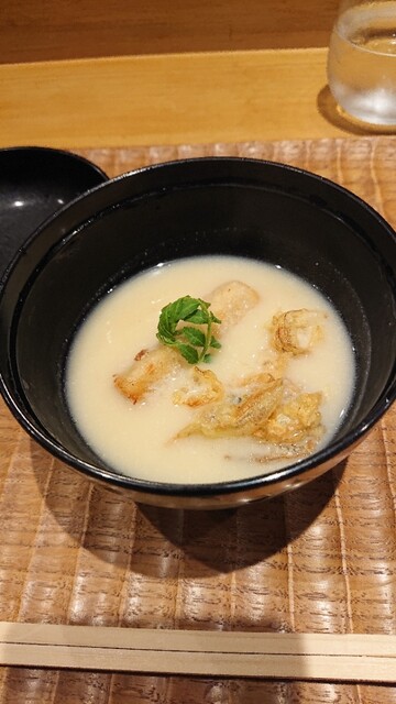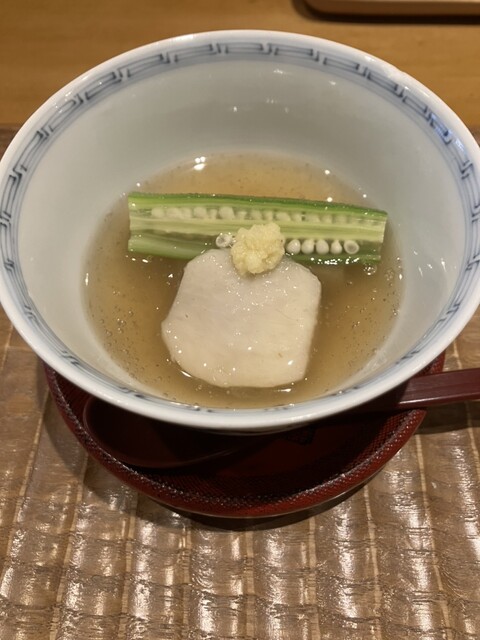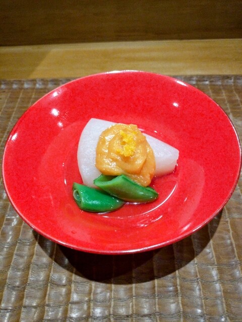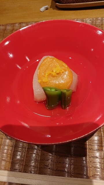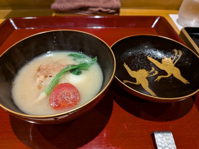 一皿目、ゆりね、銀杏、ぐじ、少しずわいの風味を聞かせた餡 ゆずの香り 師走で疲れた脳を起動させる一品