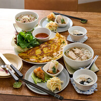 ベトナム料理の定番生春巻きからスタート。サラダに温菜、メインはお魚かお肉かチョイス。フォーは6種からお好みがお選びいただけます。最後はベトナムコーヒーまたは蓮のお茶と一緒にデザートをお楽しみください。1名様からご利用いただけます。