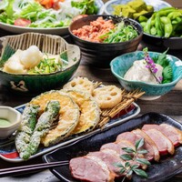 人気の豚巻き野菜蒸篭蒸しや天ぷら、京の鴨料理、おばんざい、など全8品…京料理を満喫できるフルコース★会社宴会や飲み会におすすめの飲み放題付コースです。クーポン利用で5000円♪