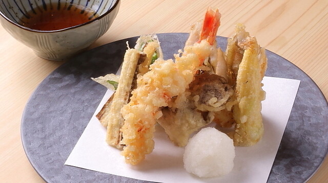 天ぷら盛り合わせ=季節に合わせた旬の食材を... (by お店)