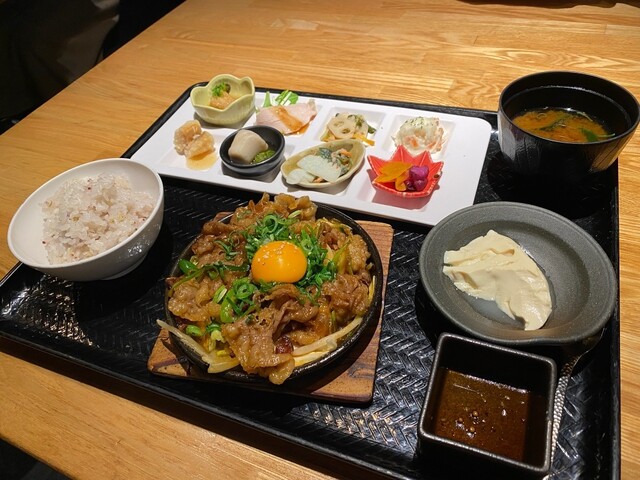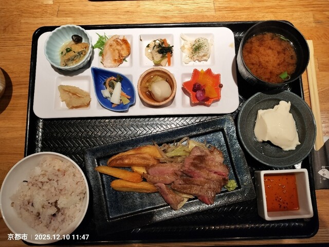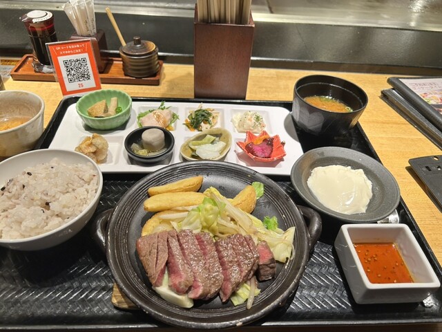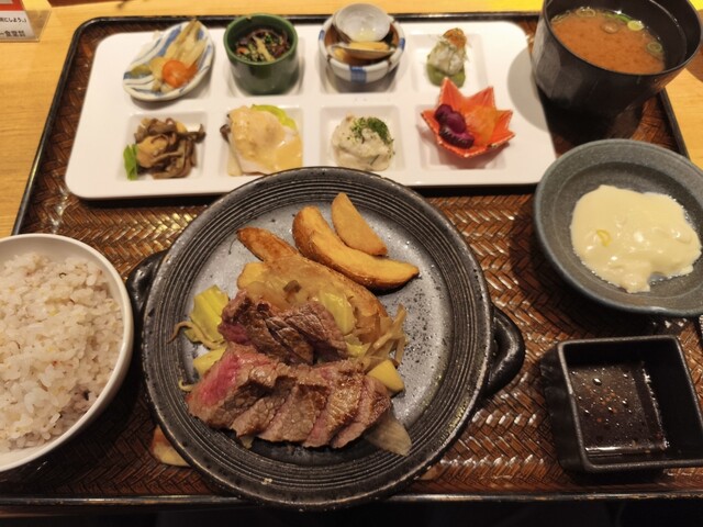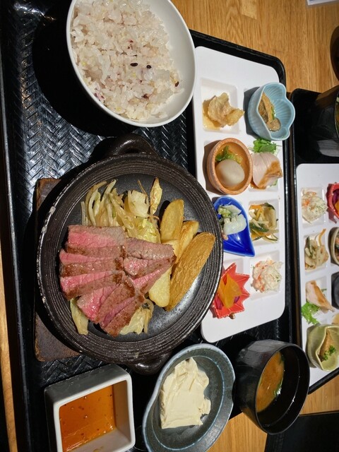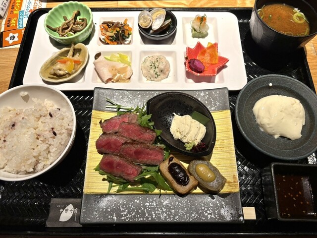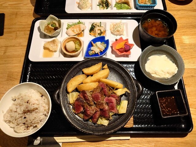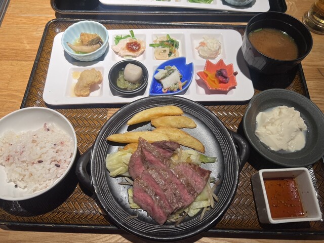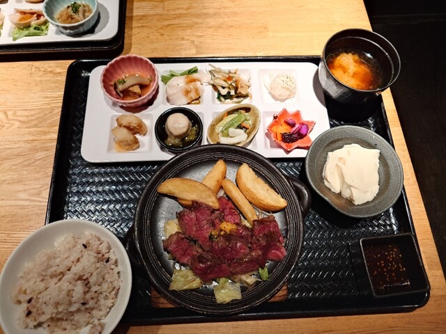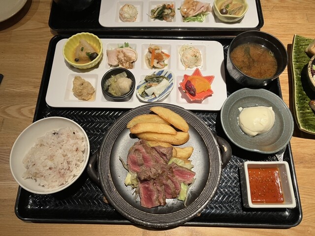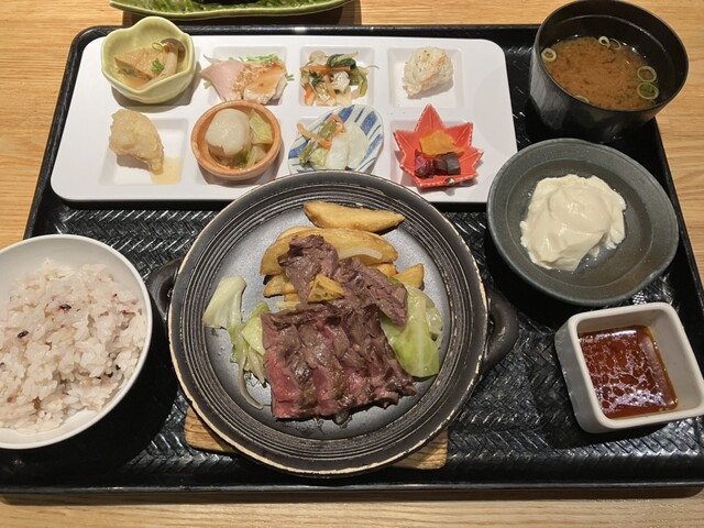 注文は黒毛和牛赤身ステーキのおばんざいプレートです。店独...