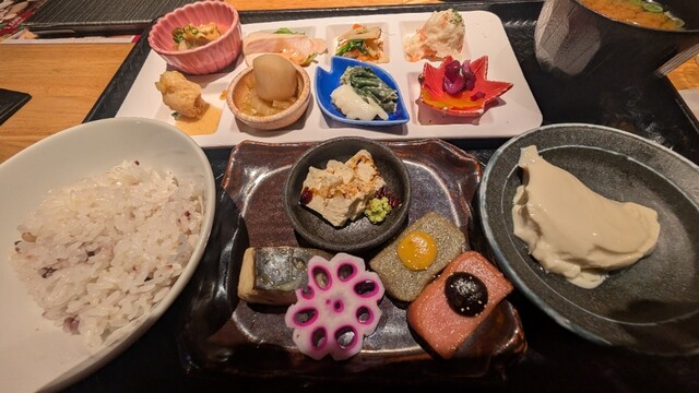 注文:京生麩田楽と生湯葉、鰆の西京焼きおばんざいプレート