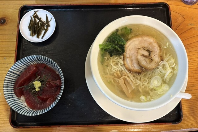 本日は炭火焼地鶏塩らーめんの鉄火丼セットをいただきました。