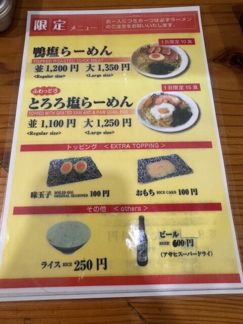 - 天然塩らーめん 1,050円