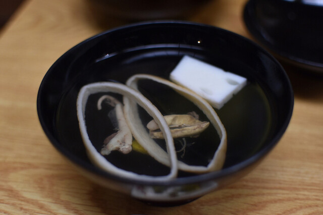 さて、妻と2人で来ましたがいろいろ食べたいと思い、きんし丼の上、鯉のお造り、茶碗蒸し、肝吸いを注文。肝焼きは何と品切れ。