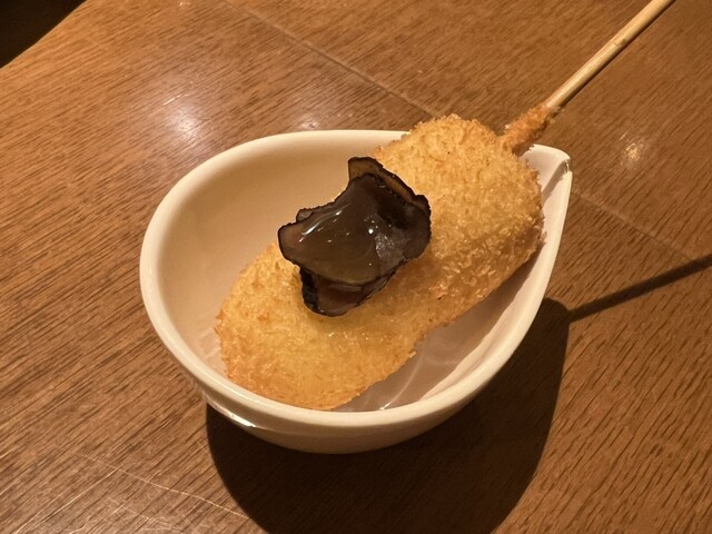 京にちなんだ食材、旬を取り入れた一串をお客様の召し上がれる頃合いを見ながら一串一串揚げさせていただきます。 ※こちらのコースは12串の目安料金となります。