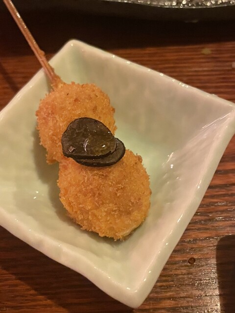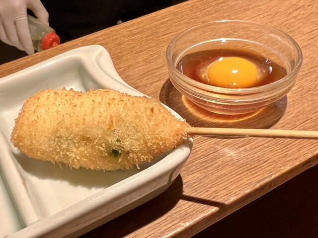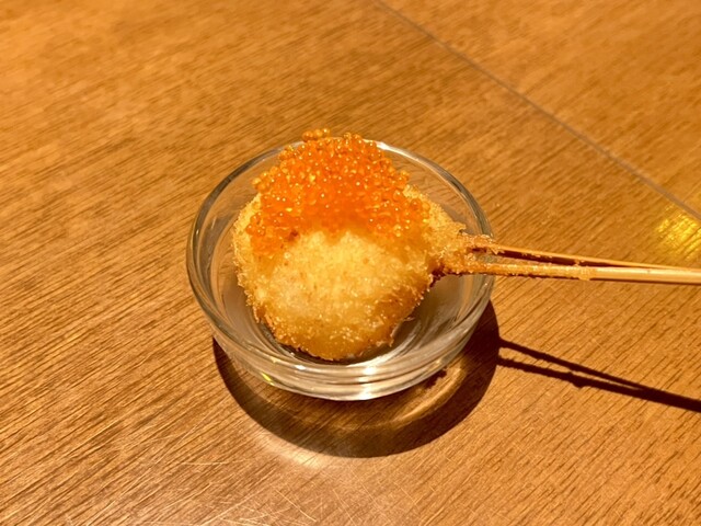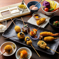 京にちなんだ食材、旬を取り入れた一串をお客様の召し上がれる頃合いを見ながら一串一串揚げさせていただきます。 ※こちらのコースは16串の目安料金となります。