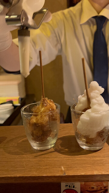 京にちなんだ食材、旬を取り入れた一串をお客様の召し上がれる頃合いを見ながら一串一串揚げさせていただきます。 ※こちらのコースは20串の目安料金となります。