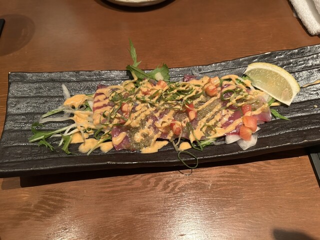 個室の居酒屋さんです。料理もお酒もたくさん種類がありますが、2時間制なのが惜しいところです。