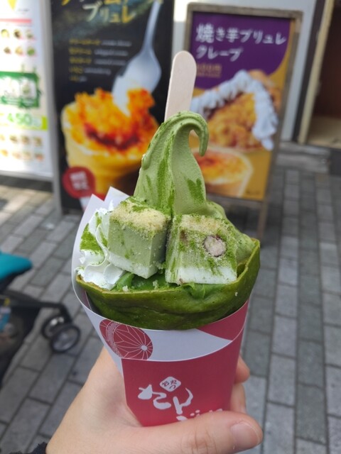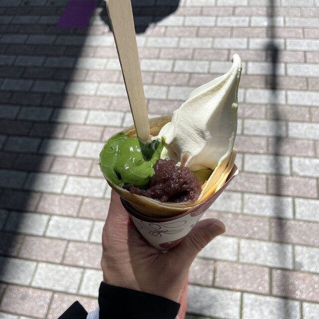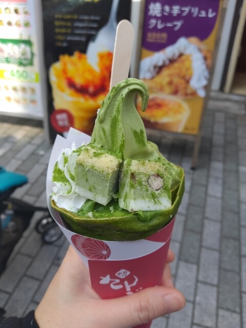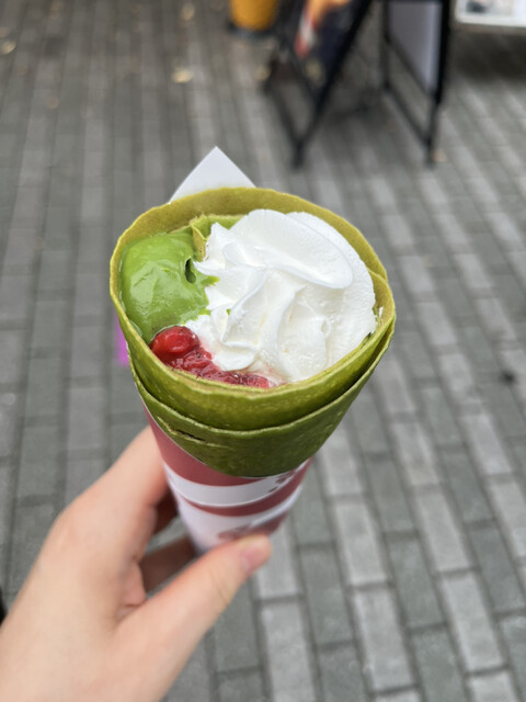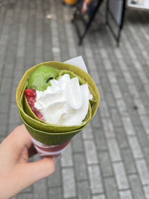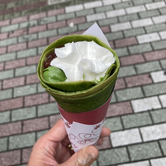 ■焼き立てのもちもち生地のクレープが350円~で味わうことができるお店。 抹茶の裏メニュークレープをインスタで見つけて食べようと思い以前お店の前を通った時、大行列だったので断... 詳細を見る