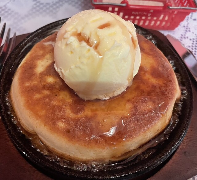 パンケーキはトッピングとしてアイスかホイップクリームを選べます。アイスは甘いので...