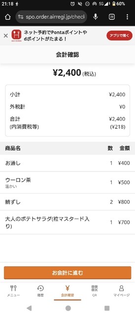 リクルートのホットペッパーのオーダーシステムが使われていました。