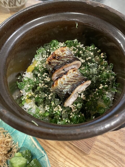 メニューはたくさんあって旬のものやお造り、土鍋の炊き込みご飯などをお願いしました。