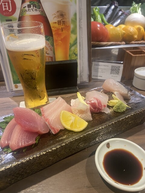 毎朝中央卸市場の新鮮な鮮魚を楽しめるお造り盛り合わせは