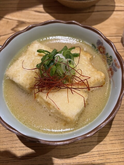 最初に鶏出汁スープの揚げ出し豆腐に感動。