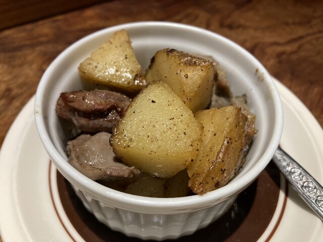 今回はポテトフライ、アヒージョ、ラザニア、牛肉の赤ワイン煮込みを注文。ラザニア、煮込みは少し小ぶりでしたが、味は抜群でした。アヒージョはバケットを追加注文して食べるのが良いでしょう。
