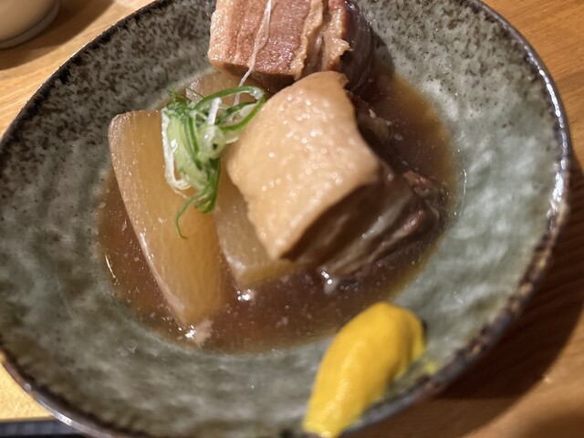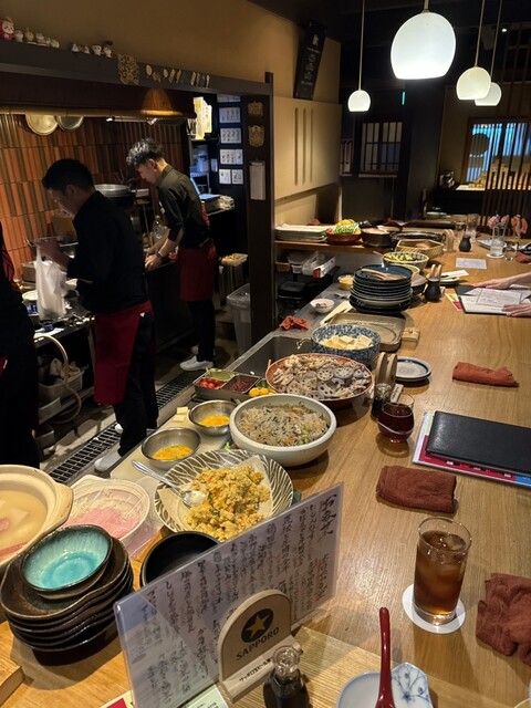 予約して伺いました。カウンターには、私の名前が書かれた手紙が。ゆっくりお過ごしくださいと書かれてました。先ずは生ビールを。続いて鶏団子と鱧竹輪の炊いたん。里芋の柚子胡椒煮を頂きました。かぼちゃと牛肉のおからはお店からサービスして頂きました。一人前のおばんざいの量は、多いそうでハーフサイズで頂きました。どれも優しいお味で酒が欲しくなります。日本酒3種を。8種類のお酒から、3種類を選べるそうです。最初...