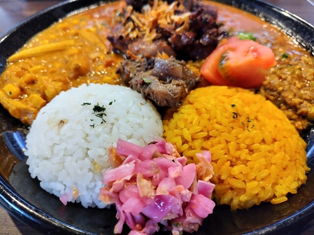 京都市役所前駅から徒歩数分。 今日はこちらに寄りました。 店内はカウンター席と テーブル席の構成で、 メインメニューはスパイスカレー。 これを1種~3種盛る形となりま... 詳細を見る