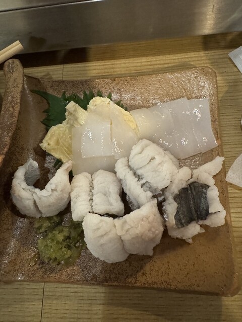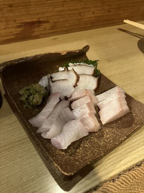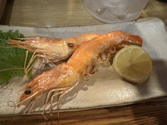 大将お一人でされてるので、先ずはお刺身を注文してできる間に数種類ある作り置きのおばんざいの中から数種類出していただきました。 その後は特大の天使のエビの塩焼き、和牛の塩焼きをいた... 詳細を見る