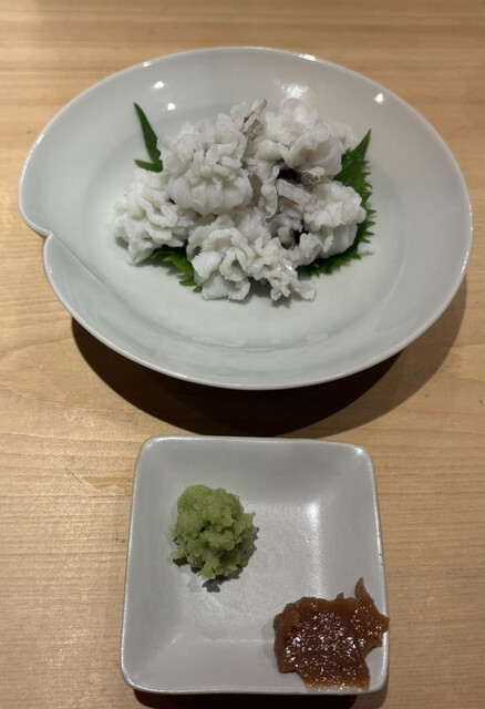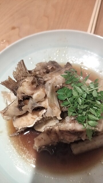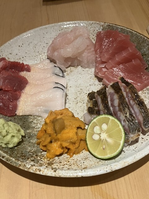 その日のメニューが黒板に手書きされています。まずは、おつくり(たこ、まぐろ、かます、ウニ)を同行者とシェアしながら頂きます。かますは少し...