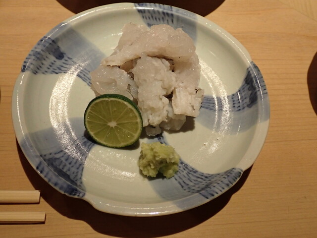 路地の奥に入ったところへ小さな入口があり8人程のカウンターのみで営業されている。