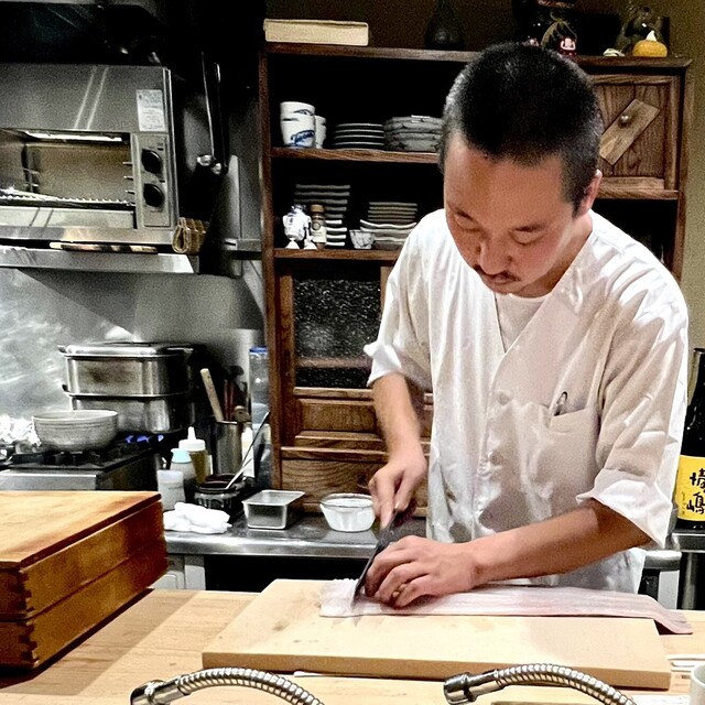 食堂おがわにいらしたご主人の営むカウンター割烹。京都はこの手のお店色々ありますがとっても美味しい良いお店でした。1つ1つがしっかり手が入れられて最高でした。秋刀魚のきも焼きも松茸のフライもだし巻きも最...