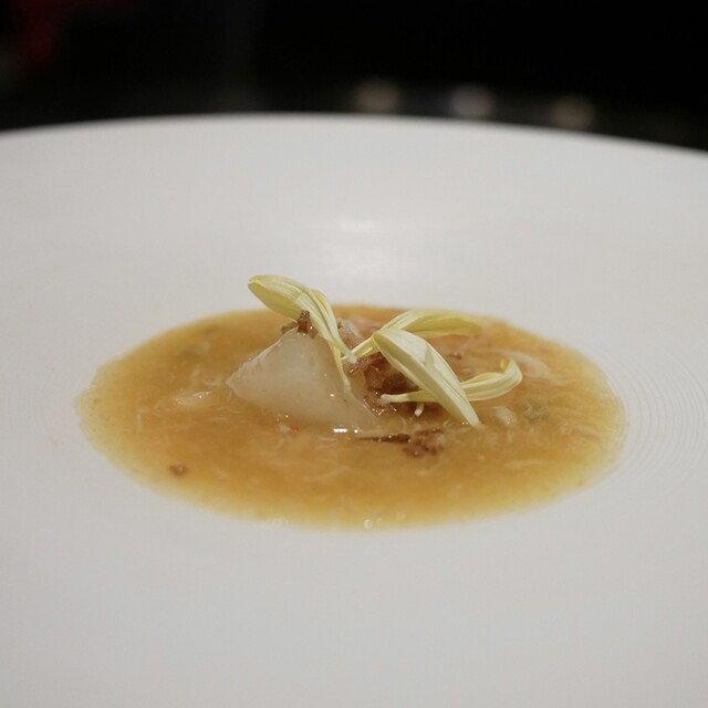ベルロオジエが評価された料理手法が“add on”。 食材本来の味を研ぎ澄ます引算の調理が多い中、シェフ岩崎が取り組んだのは、食材を組み合わせて、新しい味を創造すること。素材の相性、成分や食感などを見極め、相乗効果で美味しさを引き出す。伝統の中華料理を、素材を尊重する日本人らしい視点で見つめ、自由な発想と表現で京都を代表するガストロノミーへと進化させました。