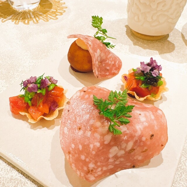 食べやすい一口サイズの料理がたくさん出てくるのですが、どれもが凝っていて目も舌も幸せな時間を過ごせました。