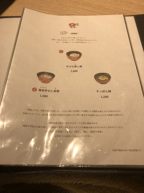 毎度のことですが、お料理は文句無しに美味しく、日本酒に合うお料理ばかりで楽しいです。かぶら蒸しのお椀は格別!おでん大根天ぷらが印象的でした。菊姫にごり酒は口当たりがよく飲みやすかったです。大好きなお店です!