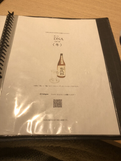日航プリンセスホテルのすぐ近く、高辻通にある 酒と魚 DNA さん。季節のメニューは必ず制覇しています。
