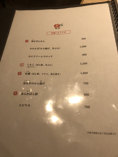 やっぱりどの料理も本当に美味しい!特に小芋のから揚げと塩辛ぽてと、季節椀を食すのが毎回楽しみです。