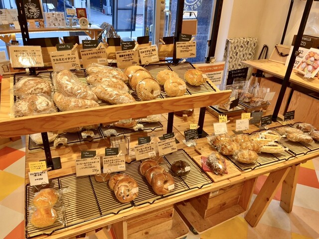 四条烏丸から一本上がった通り沿いにあるテナントビル内のパン屋さん 京都にあるお店が10軒以上入っていて、まさにパン屋さんのセレクトショップ。 パン好きにはありがたいお店ですね。 平日のお昼頃に伺いました。 店内は各店舗毎にパンが並んでいます。 窓にそってイートインスペースもあり、ここの... 詳細を見る